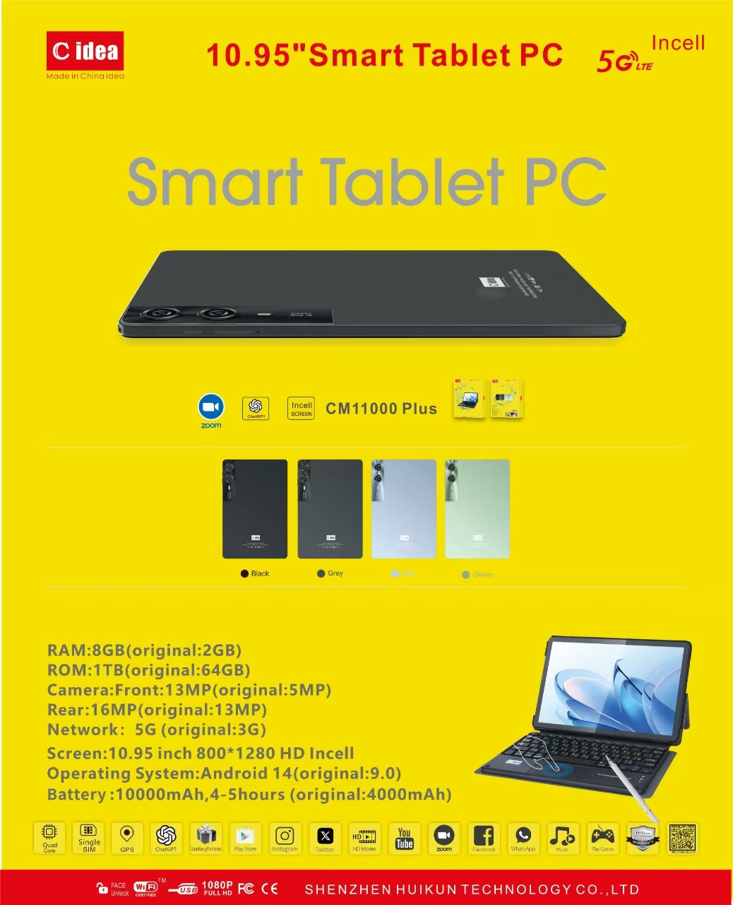 Screen:10.95 inch 800*1280 HD Incell